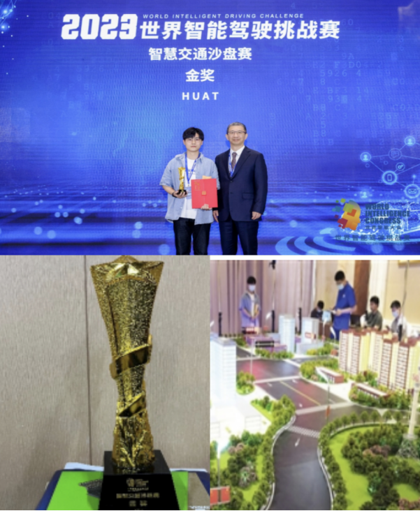 在刚刚落幕的2023世界智能驾驶挑战赛(WIDC)中,威廉希尔williamhill以龚家元博士为指导教师,研究生任文博为队长,邢泽铭、兰海涛为队员组建的“HUAT”队在智能驾驶挑战赛——智慧交通沙盘的比赛中荣获金奖。